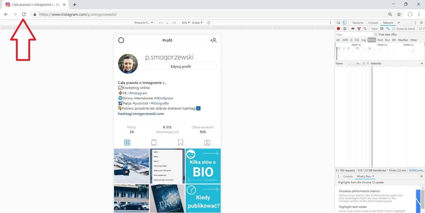 Odświeżamy stronę tak jak pokazano to na poniższym obrazku lub naciskamy przycisk na klawiaturze F5